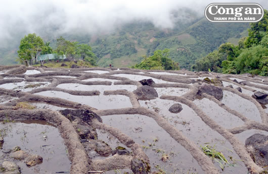 Ruộng bậc thang của bà con Xơ Đăng trên sườn núi Ngọc Linh. |