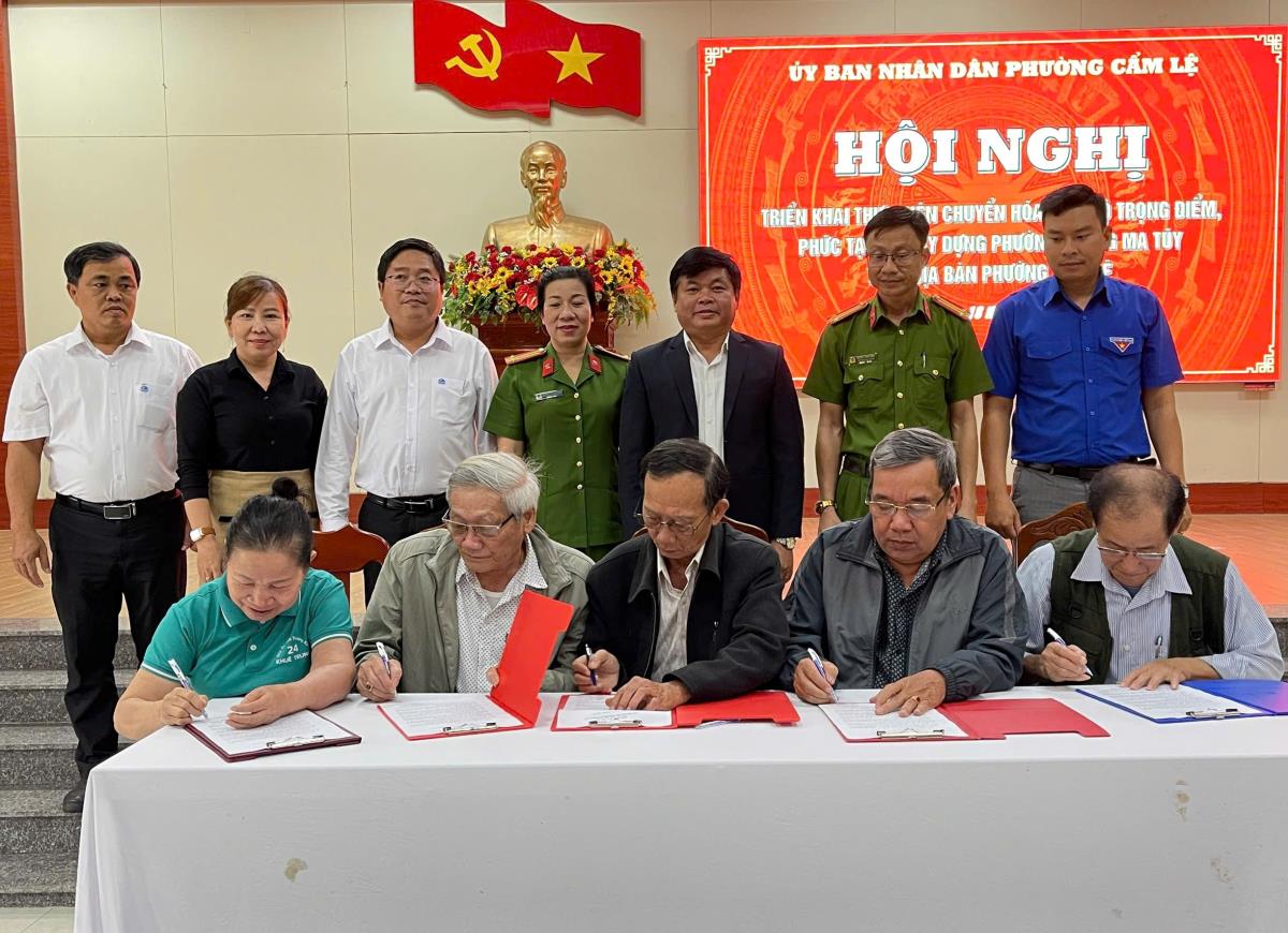 Tại hội nghị, đại diện các phòng, ban, ngành, đoàn thể, Chi bộ khu dân cư, Tổ dân phố, các trường học tham gia ký cam kết thực hiện mục tiêu tổ dân phố không ma tuý giai đoạn 2025 - 2030 đồng thời được nghe phổ biến pháp luật liên quan đến lĩnh vực phòng ngừa, ứng phó với các đe dọa an ninh phi truyền thống giai đoạn 2025-2030.