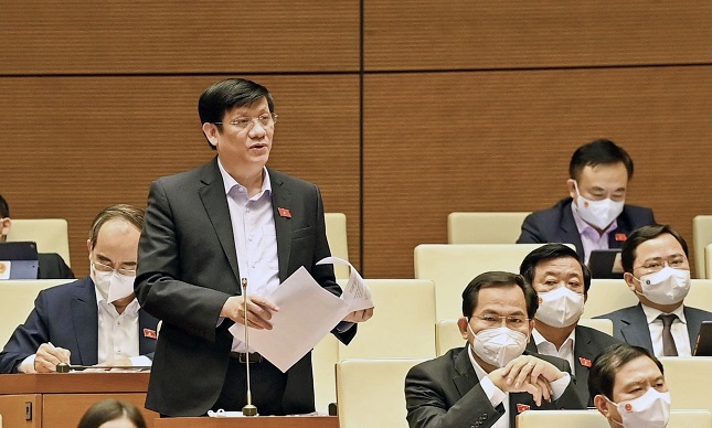 Tại phiên thảo luận, Bộ trưởng Nguyễn Thanh Long làm rõ thêm về một số nội dung đại biểu Quốc hội và cử tri, nhân dân cả nước quan tâm. Trước hết, Bộ trưởng đề cập vấn đề vaccine. Theo ông Nguyễn Thanh Long, đến nay, Việt Nam đã có những thỏa thuận, đơn hàng, hợp đồng lên tới gần 200 triệu liều vaccine, trong đó đã tiếp nhận khoảng 125 triệu liều và đang đẩy nhanh tốc độ đưa vaccine về nước cuối năm nay để phục vụ người dân miễn phí. Cùng với đó, chiến dịch tiêm chủng vaccine cũng đang được triển khai rất thành công. Tính đến ngày 17-11, cả nước đã tiêm được hơn 90 triệu liều với trên 83,8 % số người từ 18 tuổi đã được tiêm ít nhất một liều và hơn 40% số người 18 tuổi trở lên được tiêm đủ 2 mũi. Việt Nam là một trong 20 nước trên thế giới có số liều vaccine tiêm chủng nhiều nhất, đứng thứ hai trong khu vực Đông Nam Á (sau Indonesia), và là một trong nhóm 3 nước có tốc độ tiêm nhanh nhất.