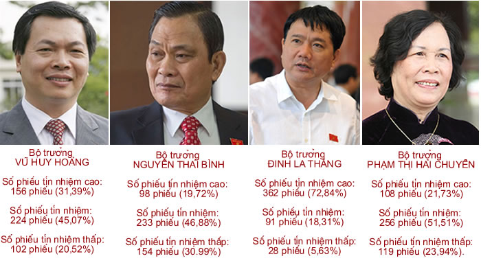 Kết quả lấy phiếu tín nhiệm của các bộ trưởng trả lời chất vấn trước Quốc hội