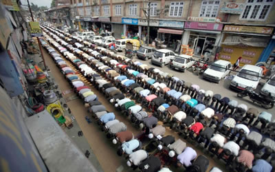 Các tín đồ Hồi giáo Kashmiri đang cầu nguyện trên đường phố tại Srinagar, Ấn Độ. |