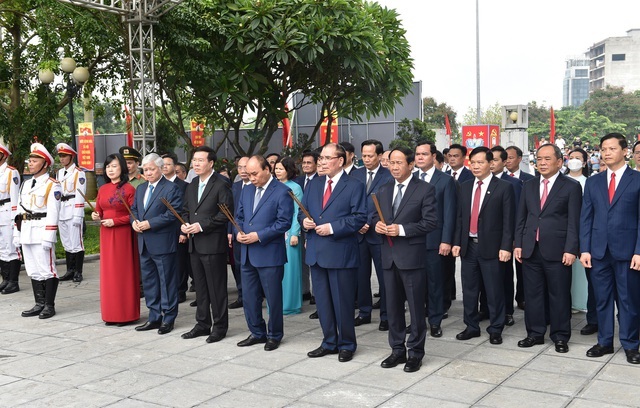 Trước khi dự buổi lễ, Chủ tịch nước Nguyễn Xuân Phúc dẫn đầu Đoàn đại biểu lãnh đạo Đảng, Nhà nước dâng hương, dâng hoa tại Khu lưu niệm Tổng Bí thư Nguyễn Văn Cừ, phường Phù Khê, thành phố Từ Sơn, tỉnh Bắc Ninh.