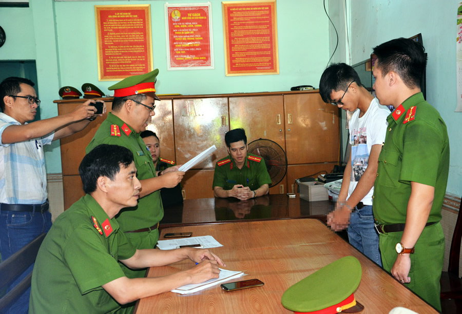 Lực lượng Cảnh sát kinh tế đọc lệnh bắt một đối tượng lừa đảo công nghệ cao. |