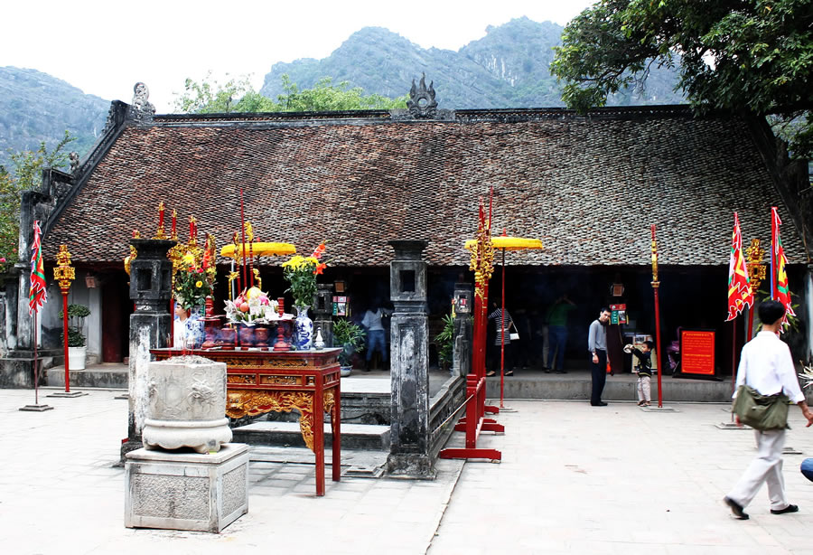 Phía sau Tràng An là những ngọn núi đá vôi, tạo ra vẻ gì đó huyễn hoặc mang nét cổ tích. Khu nhà thờ chính có rất nhiều bàn thờ khác nhau với những bài vị, như bàn thờ "Công Đống Đại Thần Tướng Sĩ Triều Đinh", "Bàn thờ Vọng tộc Liệt Nữ". Cạnh đó, giống như một Khu bảo tàng nhỏ lưu giữ những mảnh gỗ, đồng tiền của Triều Đinh và Triều Lê. Cảm giác chính là nhìn từ trên cao xuống, những chiếc thuyền đưa khách vào hang động Tràng An giống như một bức tranh thủy mặc.