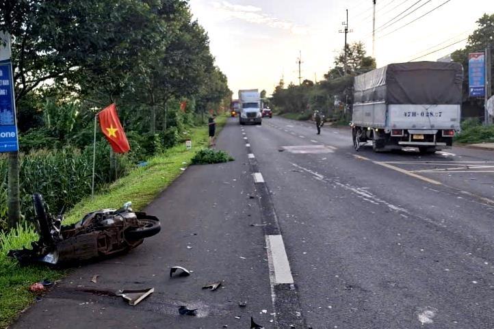 * Lúc 5 giờ 20 cùng ngày, xe tải do tài xế Võ Tấn Bình (36 tuổi, trú xã Krông Pắk, Đắk Lắk) điều khiển lưu thông đến đoạn đường Hồ Chí Minh qua xã Thuận An (Lâm Đồng) đã va chạm với xe máy do anh H.V.P. (38 tuổi, trú Đắk Lắk) điều khiển lưu thông theo hướng ngược lại.