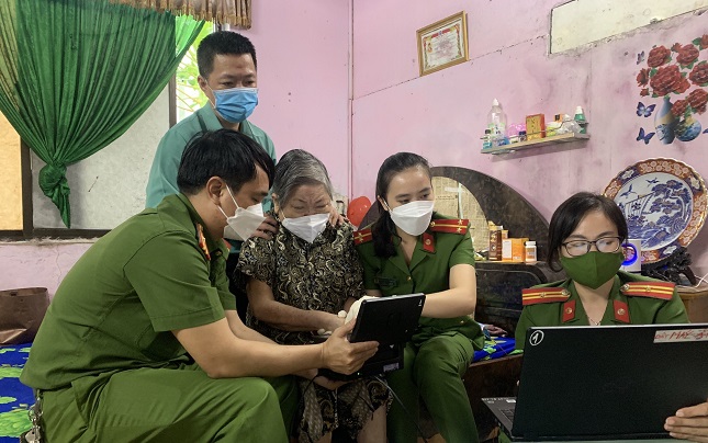 Cán bộ, chiến sĩ Công an TP Quy Nhơn đến tận nhà người bệnh làm thủ tục cấp CCCD.