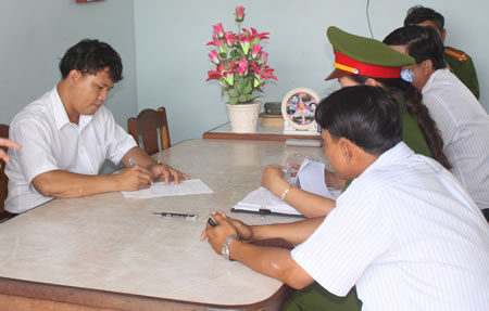 Đặng Mạnh Cường ký vào biên bản bắt tạm giam. |