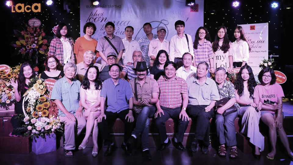 Giới thiệu tập thơ "Phơi cơn mưa lên chiều" của nhà thơ Nguyễn Ngọc Hạnh tại Hà Nội, năm 2018. |