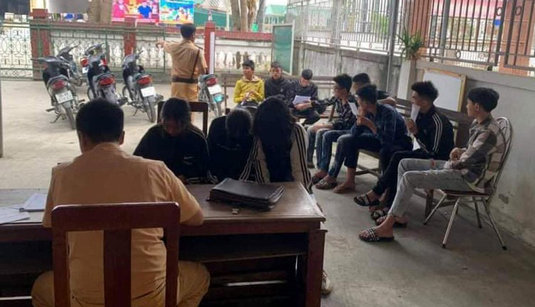 Lực lượng CA đang làm việc với nhóm đối tượng. |