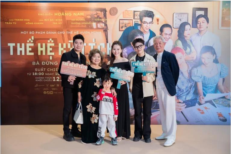 NSND Thanh Hoa cùng người thân trong buổi chiếu phim ra mắt tại Hà Nội. Ảnh: TV