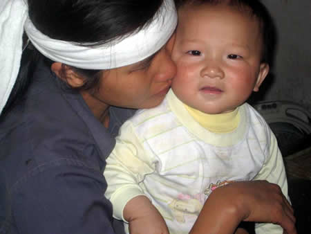 Chị Tô Thị Ngọc cùng cháu Được. |