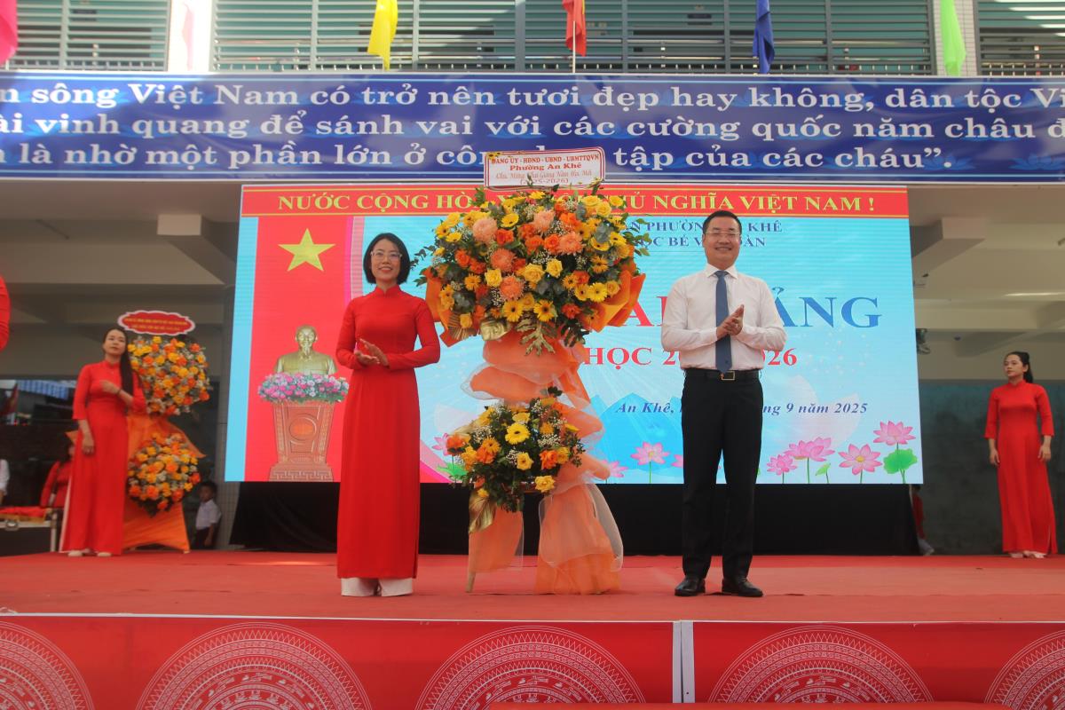 Đại tá Nguyễn Đại Đồng, Phó Giám đốc Công an TP Đà Nẵng và lãnh đạo phường An Khê đã tặng hoa chúc mừng nhà trường nhân dịp khai giảng năm học mới. Ban Giám hiệu và các mạnh thường quân tặng 10 suất học bổng cho các em học sinh có hoàn cảnh khó khăn.