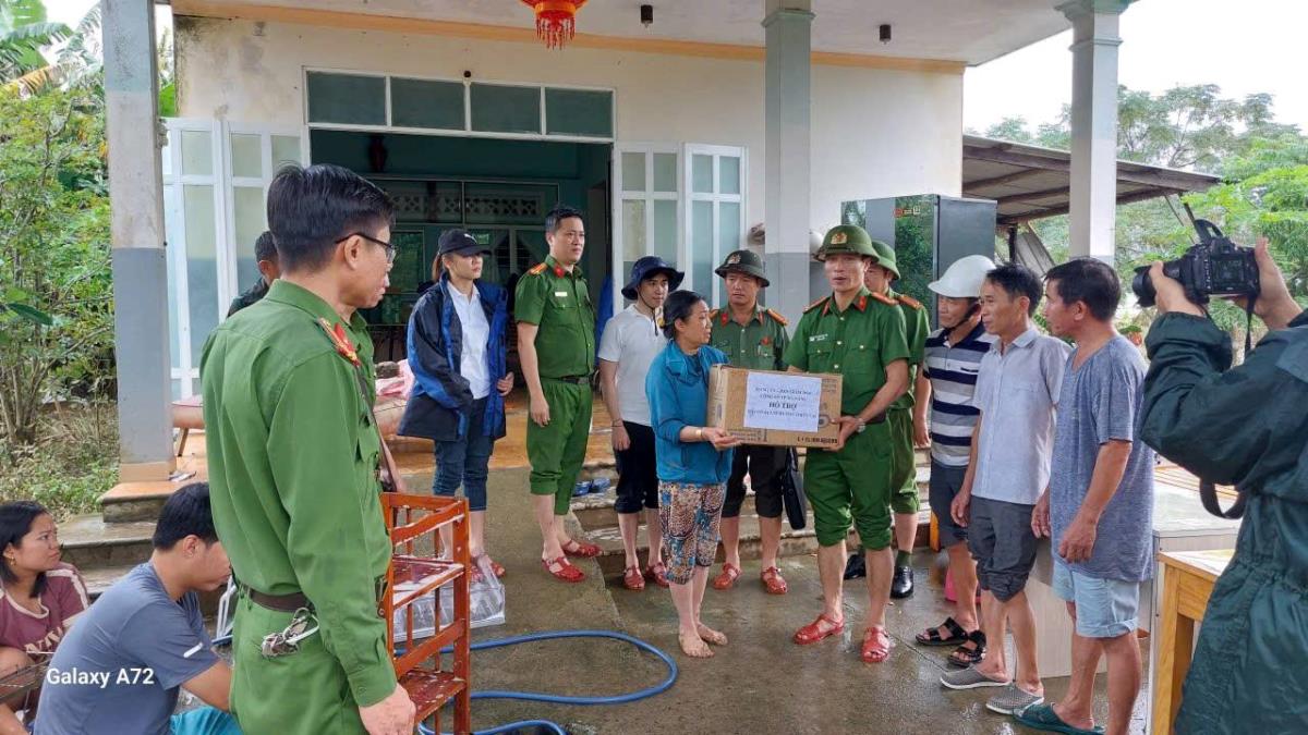Tại các xã Duy Xuyên, Nam Phước, Đại tá Nguyễn Xuân Hoàng- Phó Giám đốc Công an TP cùng đại diện các đơn vị nghiệp vụ và Công an phường Sơn Trà đã trao gần 500 suất quà nhu yếu phẩm gồm mì tôm, bánh ngọt, bánh chưng, nước suối … gửi đến các hộ dân đang bị ngập sâu, chia cắt do mưa lớn kéo dài. Phó Giám đốc Công an TP đã thăm hỏi, động viên và biểu dương tinh thần trách nhiệm của cán bộ, chiến sĩ Công an các đơn vị, địa phương đang ngày đêm hỗ trợ, di dời và bảo đảm an toàn cho nhân dân vùng lũ, thể hiện rõ tinh thần "Vì nhân dân phục vụ".