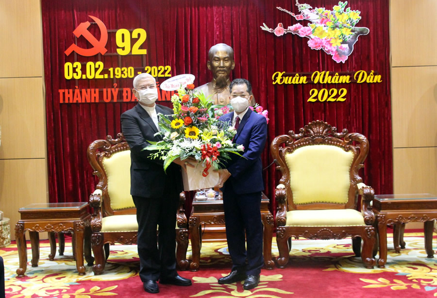 Phát biểu tại buổi đến thăm, Giám mục Giuse Đặng Đức Ngân cho biết, năm qua, mặc dù chịu những tác động phức tạp của tình hình dịch bệnh, tuy nhiên dưới sự lãnh đạo của Thành ủy, Đà Nẵng đã từng bước vượt qua khó khăn, sớm ổn định tình hình đời sống, kinh tế, xã hội. Đại diện Tòa Giám mục Đà Nẵng dành lời cảm ơn sự quan tâm, tạo điều kiện của Thành ủy, chính quyền TP quan tâm, tạo thuận lợi cho sinh hoạt tôn giáo trong những năm qua. Bước sang năm 2022, chức sắc, chức việc cùng toàn thể cộng đồng giáo dân sẽ tiếp tục đồng hành cùng chính quyền và nhân dân vượt qua khó khăn do tác động của dịch bệnh, chung tay xây dựng và phát triển thành phố.