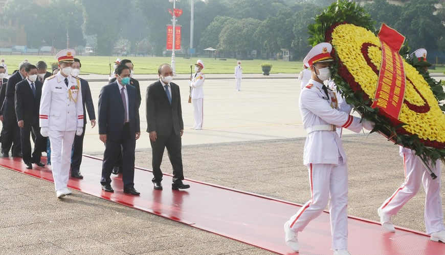 Sáng 1-9, Đoàn đại biểu Ban Chấp hành Trung ương Đảng, Chủ tịch nước, Quốc hội, Chính phủ, Ủy ban Trung ương Mặt trận Tổ quốc Việt Nam đến đặt hoa và vào Lăng viếng Chủ tịch Hồ Chí Minh.