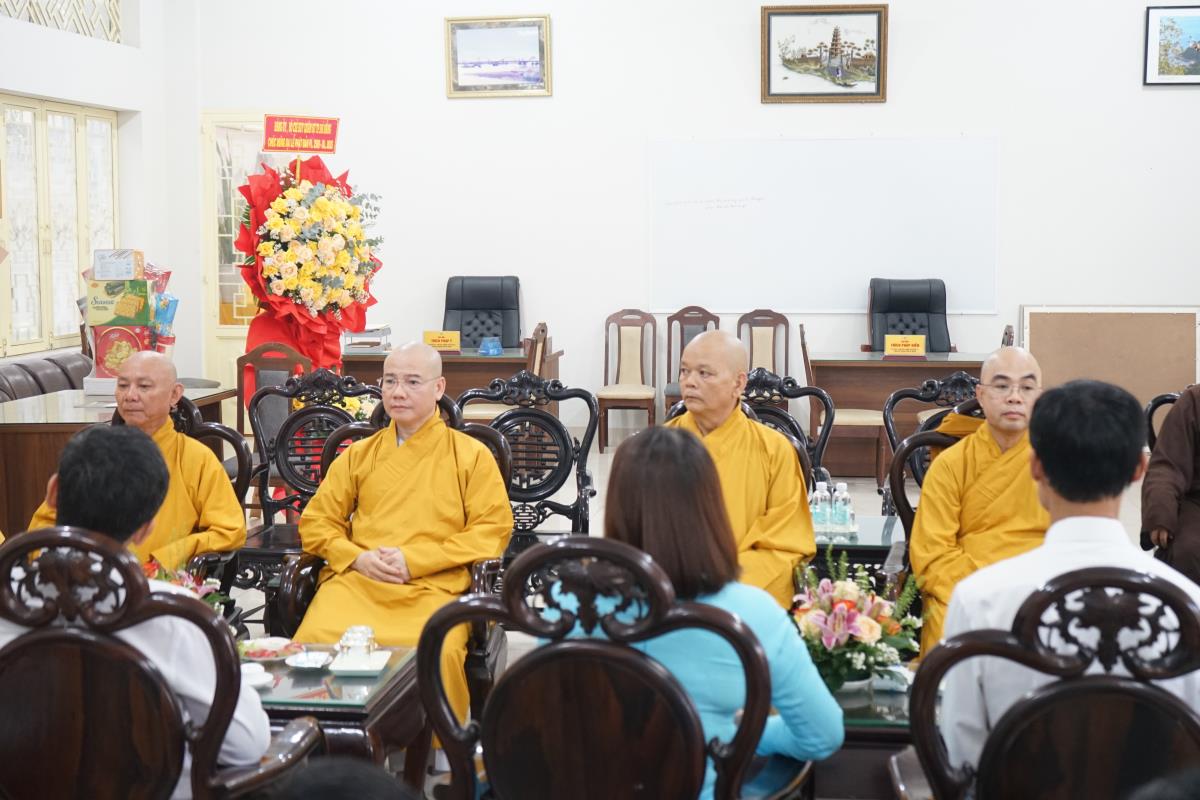 Tiếp đoàn có Hòa thượng Thích Từ Nghiêm – Trưởng Ban Trị sự GHPGVN TP; Thượng tọa Thích Thông Đạo – Phó Trưởng ban Thường trực Ban Trị sự GHPGVN TP cùng chư tôn đức trong Thường trực Ban Trị sự.