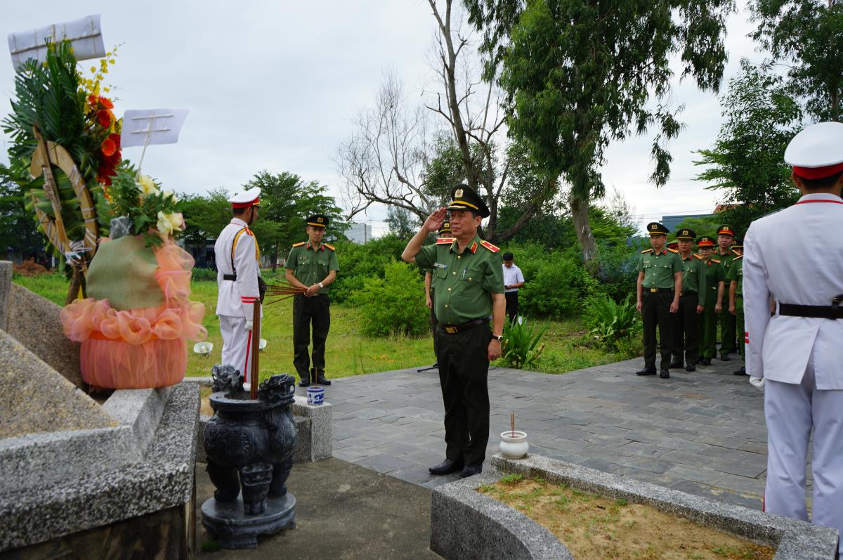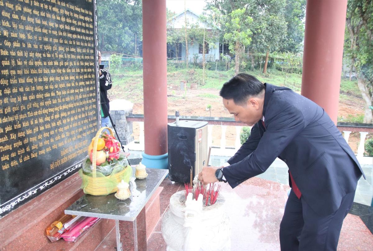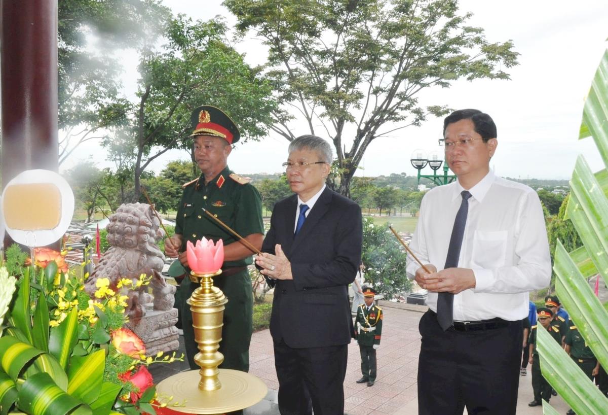 Trong không khí trang nghiêm, Thiếu tướng Nguyễn Hữu Hợp cùng đoàn công tác thành kính dâng hoa, dâng hương tri ân các Anh hùng Liệt sĩ đã anh dũng chiến đấu, hy sinh vì sự nghiệp đấu tranh giải phóng dân tộc.