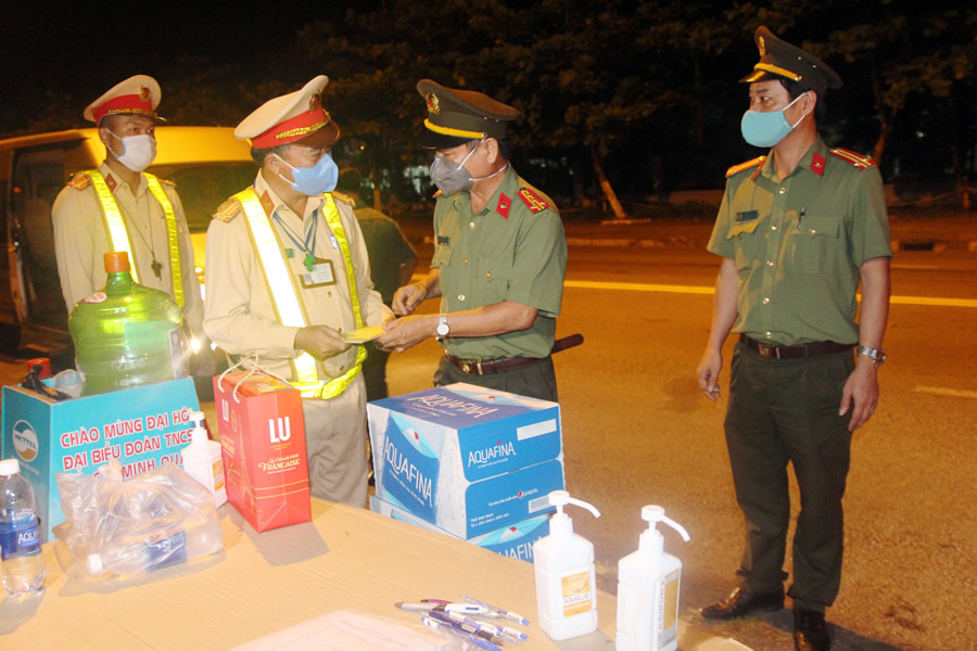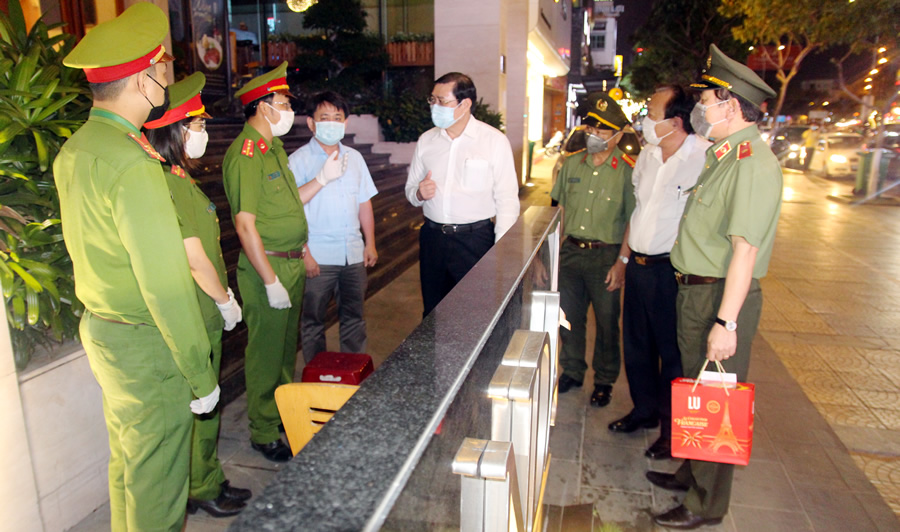 Tối 20-3, Chủ tịch UBND TP Đà Nẵng Huỳnh Đức Thơ cùng đoàn công tác của CATP Đà Nẵng do Thiếu tướng Vũ Xuân Viên, Giám đốc CATP dẫn đầu, đã đến thăm, tặng quà động viên tại 7 chốt chặn kiểm dịch và điểm cách ly khách sạn Vanda.
