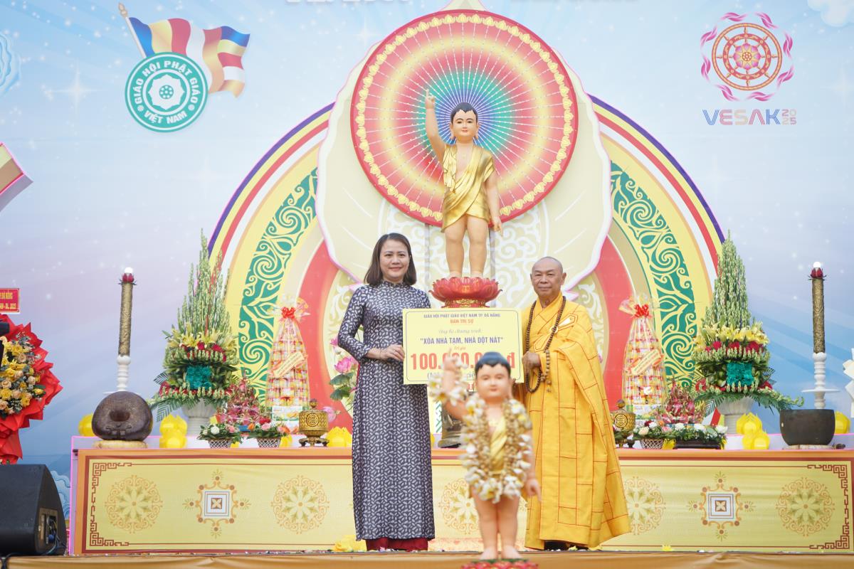 Dịp này, Ban Trị sự GHPGVN TP Đà Nẵng đã trao tặng 100 triệu đồng thông qua Ủy ban MTTQVN TP để hỗ trợ chương trình xóa nhà tạm cho hộ nghèo, nghĩa cử cao đẹp thể hiện tinh thần nhập thế, gắn đạo với đời, hành động vì cộng đồng.
