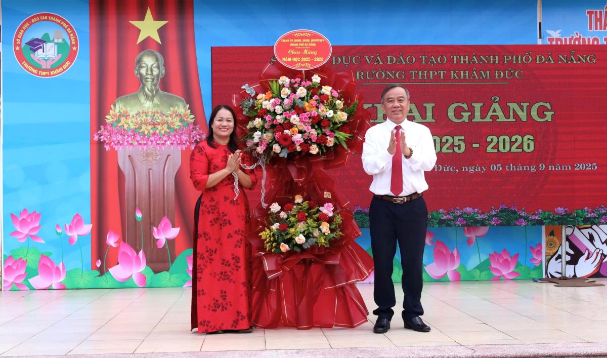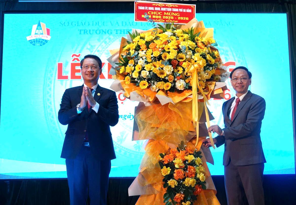 Cùng thời điểm, tại Trường THPT chuyên Nguyễn Bỉnh Khiêm (phường Bàn Thạch), Phó Bí thư Thường trực Thành ủy Đà Nẵng Nguyễn Đình Vĩnh dự lễ khai giảng và chúc mừng những kết quả đáng tự hào mà trường đạt được.