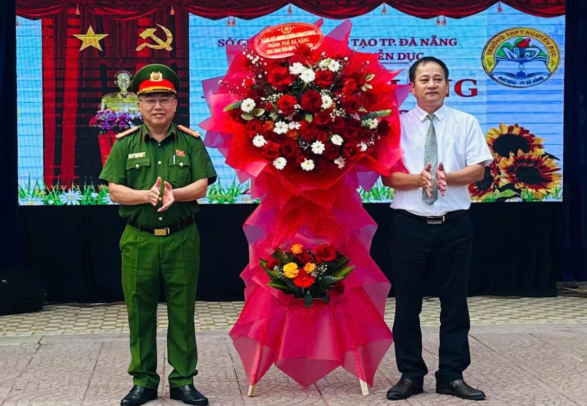 Không khí khai trường tại Trường THPT Nguyễn Dục (xã Phú Ninh) thêm phần sôi nổi khi có sự tham dự của Đại tá Nguyễn Văn Tăng- Thành ủy viên, Phó Giám đốc Công an TP Đà Nẵng.