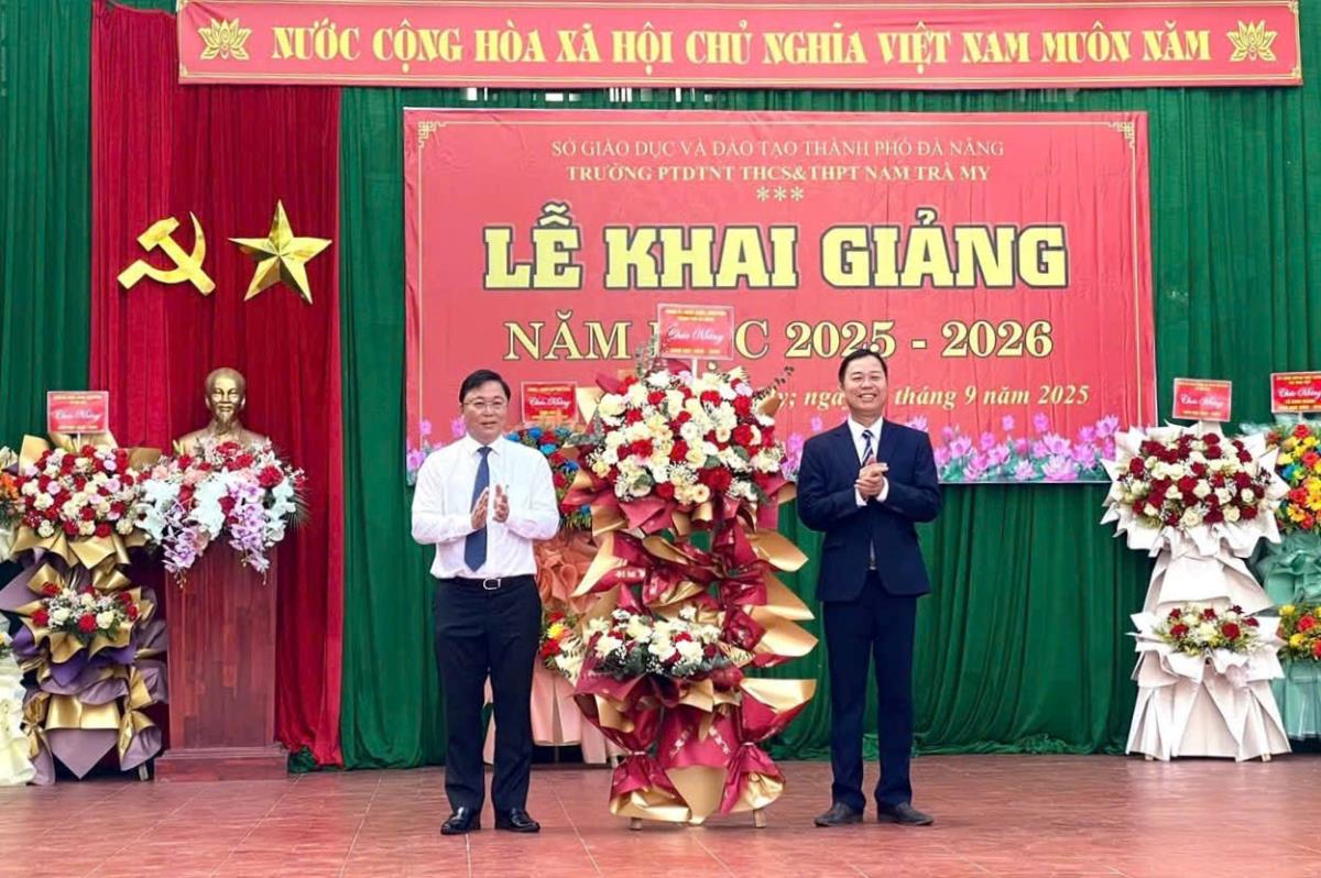 Ở vùng cao Khâm Đức, lễ khai giảng tại Trường THPT Khâm Đức diễn ra trang nghiêm với sự tham dự của Phó Chủ tịch HĐND TP Đà Nẵng Trần Xuân Vinh.