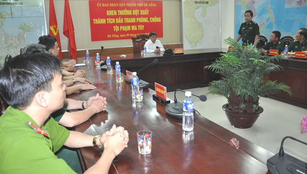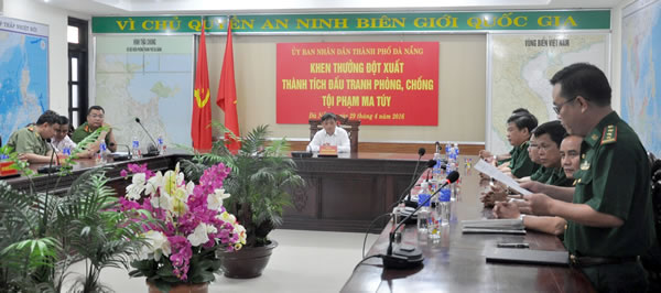 (Cadn.com.vn) - Để động viên lực lượng BĐBP TP. Đà Nẵng vừa khám phá thành công chuyên án ma túy 415B, chiều ngày 29-4-2016, đồng chí Đặng Việt Dũng, UVBTV Thành ủy, Phó Chủ tịch UBND TP Đà Nẵng đã đến thăm, chúc mừng và trao thưởng 10 triệu đồng cho Phòng Phòng chống ma túy và tội phạm (PCMT&TP) BĐBP TP.