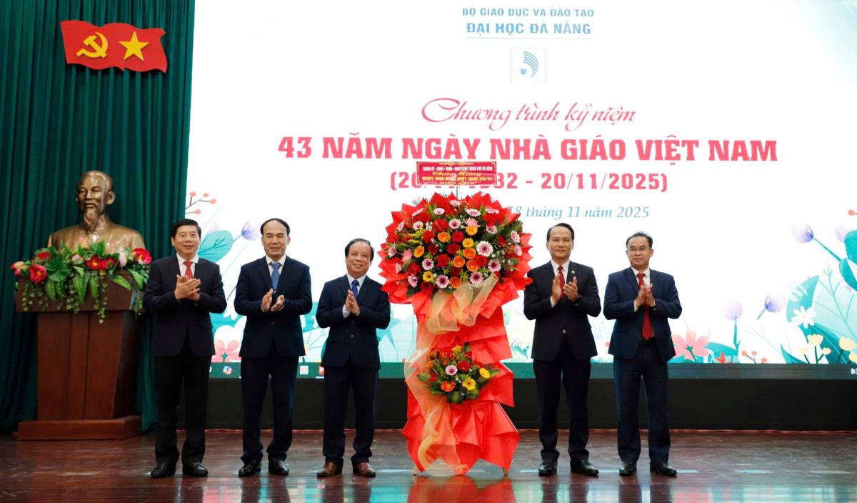 Sáng 18-11, Đại học Đà Nẵng (ĐHĐN) tổ chức Lễ kỷ niệm 43 năm Ngày Nhà giáo Việt Nam (20-11-1982 – 20-11-2025). Phó Bí thư Thường trực Thành ủy Đà Nẵng Nguyễn Đình Vĩnh; Phó Chủ tịch UBND thành phố Trần Anh Tuấn đến dự và tặng hoa chúc mừng.