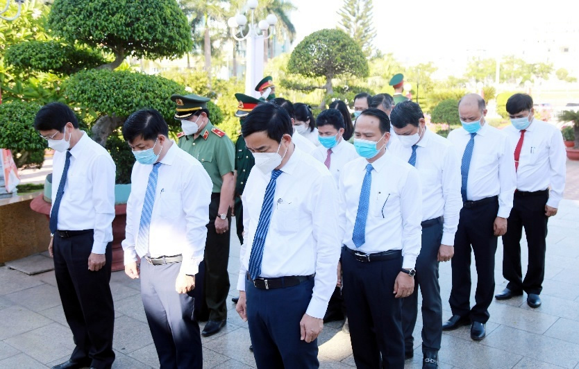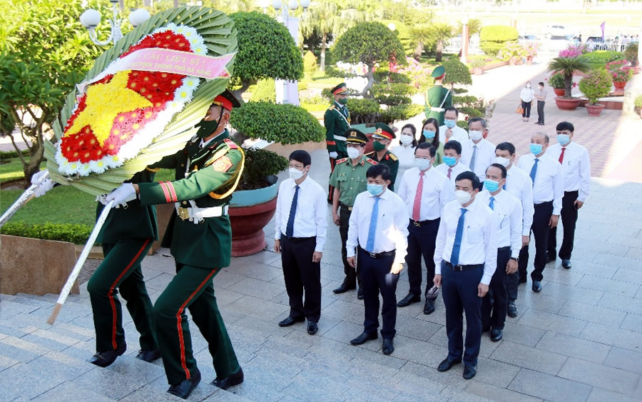 Lãnh đạo thành phố dành phút mặc niệm trước anh linh các Anh hùng, liệt sĩ. |