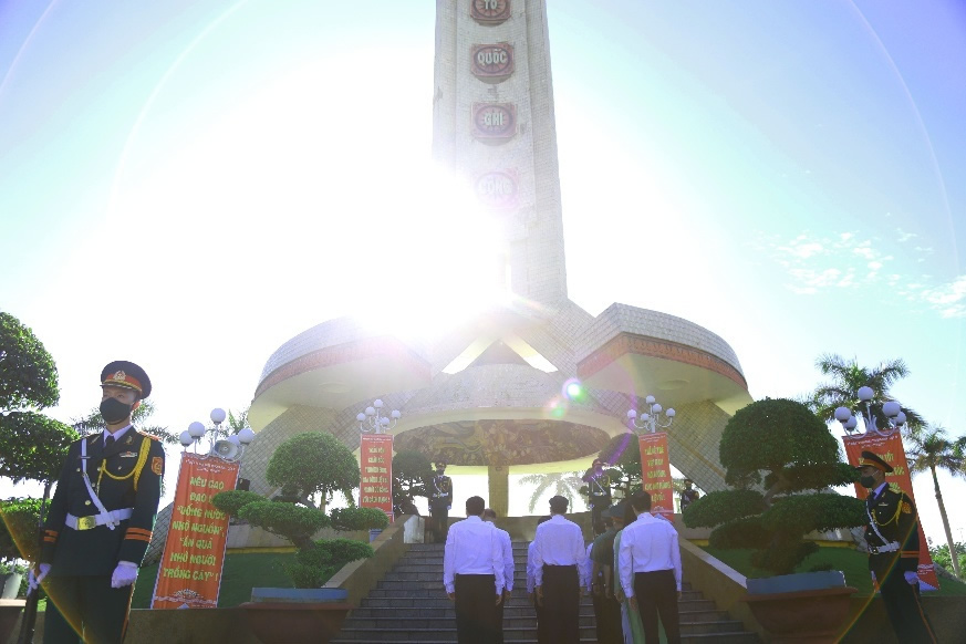 Trong không khí trang nghiêm, các đại biểu đã đặt vòng hoa, dành phút mặc niệm và thắp hương tri ân tưởng nhớ công lao to lớn của các Anh hùng liệt sĩ đã dũng cảm chiến đấu, hy sinh vì sự nghiệp đấu tranh giải phóng dân tộc, thống nhất đất nước.
