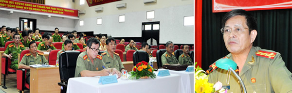 | Đại tá Lê Văn Tam phát biểu chỉ đạo tại hội nghị. |