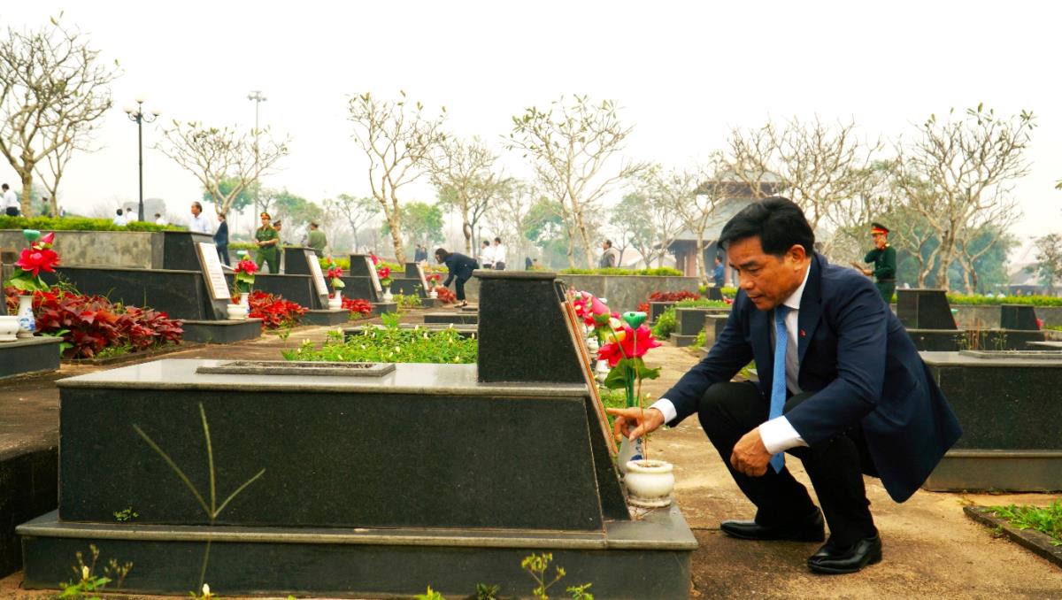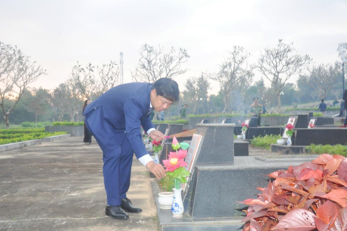 Trong không khí thiêng liêng và trang nghiêm, các đại biểu đã thành kính dâng hoa, dâng hương lên Đài tưởng niệm Nghĩa trang liệt sỹ tỉnh, Tượng đài Mẹ Việt Nam anh hùng và dành một phút mặc niệm để bày tỏ lòng thành kính, tưởng nhớ và tri ân sâu sắc các anh hùng liệt sỹ, các bà Mẹ Việt Nam anh hùng đã anh dũng hy sinh vì độc lập, tự do cho dân tộc, vì chủ nghĩa xã hội.