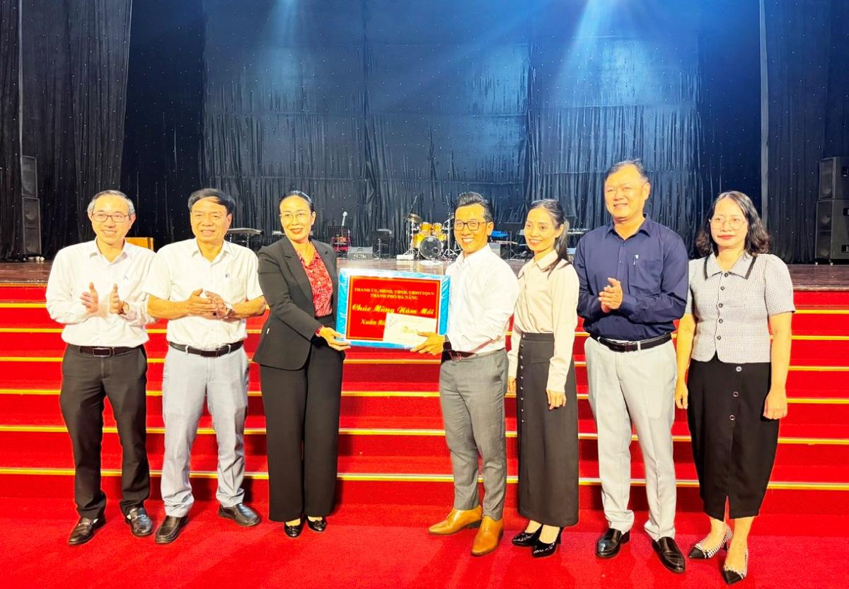 Lãnh đạo Nhà hát Trưng Vương đón nhận quà và sự động viên từ Phó Chủ tịch UBND TP Nguyễn Thị Anh Thi.