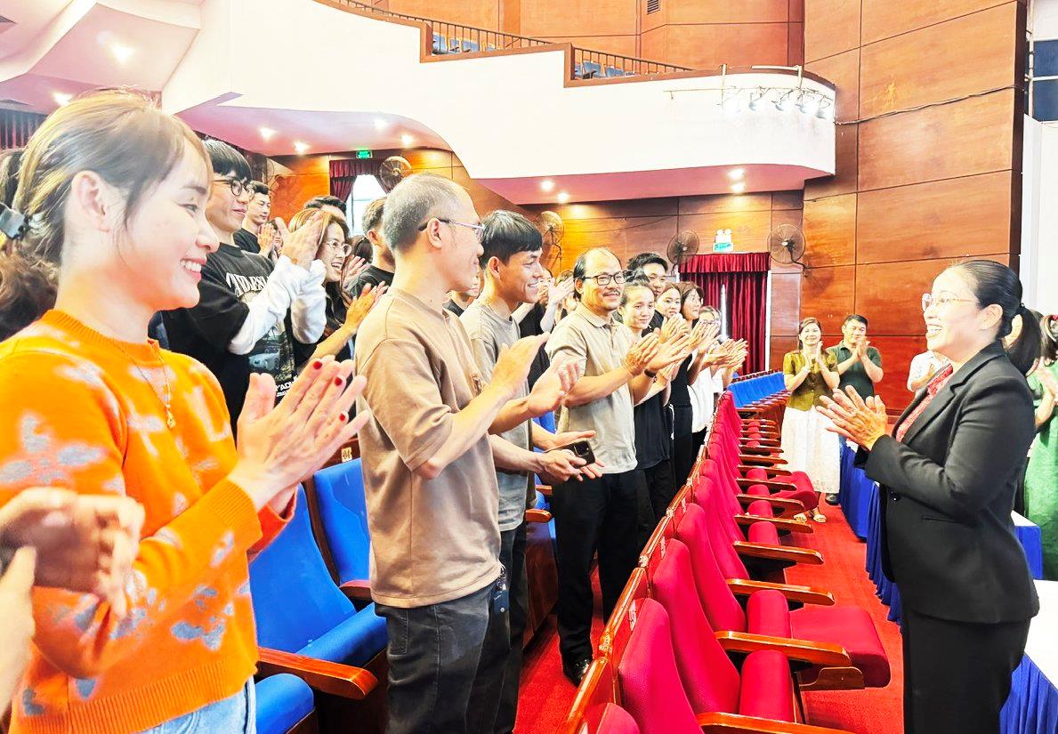 Phó Chủ tịch UBND TP Nguyễn Thị Anh Thi gửi lời chúc mừng năm mới 2026 và Tết Bính Ngọ đến các nghệ sỹ Nhà hát Trưng Vương.