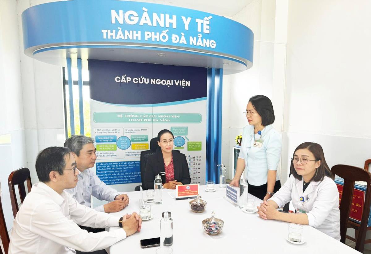 Lãnh đạo Trung tâm Cấp cứu TP Đà Nẵng báo cáo với Phó Chủ tịch UBND TP Nguyễn Thị Anh Thi.