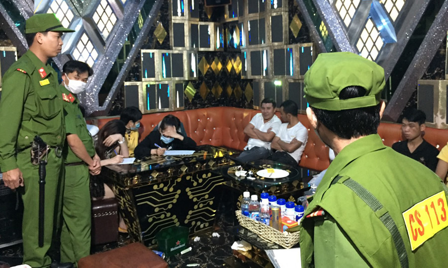 Lực lượng CSHS CA tỉnh Quảng Nam kiểm tra hành chính các đối tượng hát karaoke. |