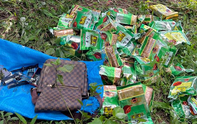 Tại hiện trường, lực lượng BĐBP kiểm tra 2 bao hàng phát hiện tổng cộng 46kg ma túy đá, là số lượng ma túy bị bắt giữ lớn nhất từ trước đến nay trên địa bàn Quảng Trị. Thu trong người đối tượng 1 khẩu súng ngắn, đạn đã lên nòng. Hai đối tượng sa lưới là người Lào, danh tính cụ thể: Tongleng Lo (1999) và Thongvang Xonglavang (1989, đều trú tỉnh Bolykhamsay, Lào).