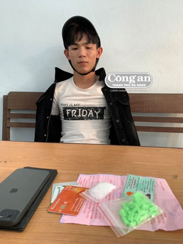Kiểm tra tại hiện trường, các trinh sát thu giữ tang vật Cường cất giấu gồm 50 viên nén (màu xanh) và một bao có chứa tinh thể màu trắng nghi là ma túy. Tại cơ quan CA, Cường khai toàn bộ là ma túy, vừa nhận của một nam thanh niên tên Bi (chưa xác định lai lịch) tại khu vực đường vào bãi rác Khánh Sơn (Q. Liên Chiểu) để giao cho khách tại địa điểm gần Bệnh viện Ung bướu Đà Nẵng nhằm kiếm lời 3 triệu đồng. Tuy nhiên, khi giao dịch chưa thành thì bị bắt.