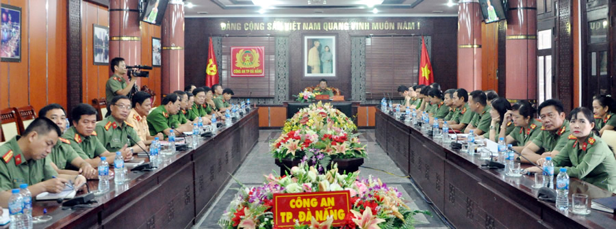 | CA các đơn vị, địa phương dự hội nghị trực tuyến tại điểm cầu Đà Nẵng. |