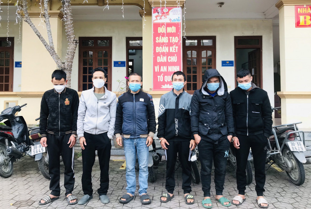 Ngày lễ Valentine, 8 mày râu gồm Lê Sỹ Ngọ (1990), Nguyễn Trọng Chính (1991), Võ Minh Thắng (1984), Đào Xuân Hùng (1988), Nguyễn Văn Hải (1984), Võ Nhân Nguyên (1983), Đào Xuân Huy (1991) và Hồ Thiên Tám (1991) đều trú huyện Can Lộc (Hà Tĩnh) rủ nhau lên núi Hồng Lĩnh chơi xóc đĩa chẵn- lẻ ăn tiền. Khi đang say sưa úp, mở bát, 8 đối tượng đã bị Công an huyện Can Lộc bắt quả tang, thu giữ 28 triệu đồng, ĐTDĐ, 1 bộ bát đĩa và các tang vật khác. Ngày 20- 2, Cơ quan Cảnh sát điều tra Công an huyện Can Lộc cho biết, đơn vị đã ra quyết định khởi tố 7 trong 8 đối tượng về hành vi "Đánh bạc".