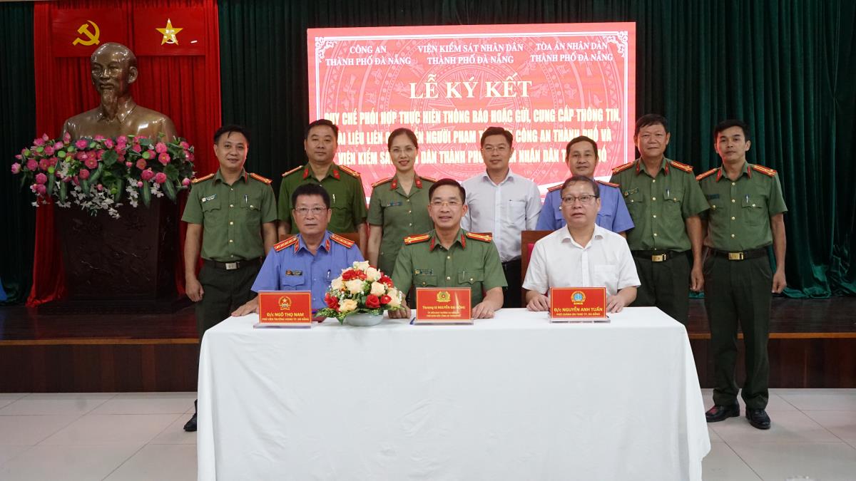 Ngày 14-6, Liên ngành Công an - Viện Kiểm sát nhân dân - Tòa án nhân dân TP Đà Nẵng đã ký Quy chế phối hợp thực hiện Thông tư liên tịch số 03/2023 ngày 12-5-2023 của Bộ Công an - Viện Kiểm sát nhân dân tối cao - Tòa án nhân dân tối cao quy định về phối hợp thông báo hoặc gửi, cung cấp thông tin, tài liệu liên quan đến người phạm tội (gọi tắt là Thông tư liên tịch số 03).
