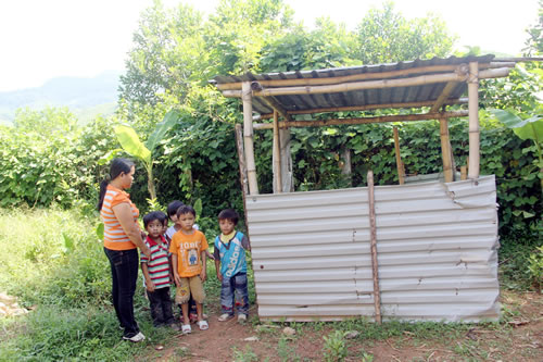 Không dám sống trong nhà xây, người dân dựng nhà sàn tạm để ở. Ảnh: L.A.T |