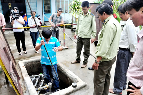 Cơ quan chức năng kiểm tra các bồn xăng.