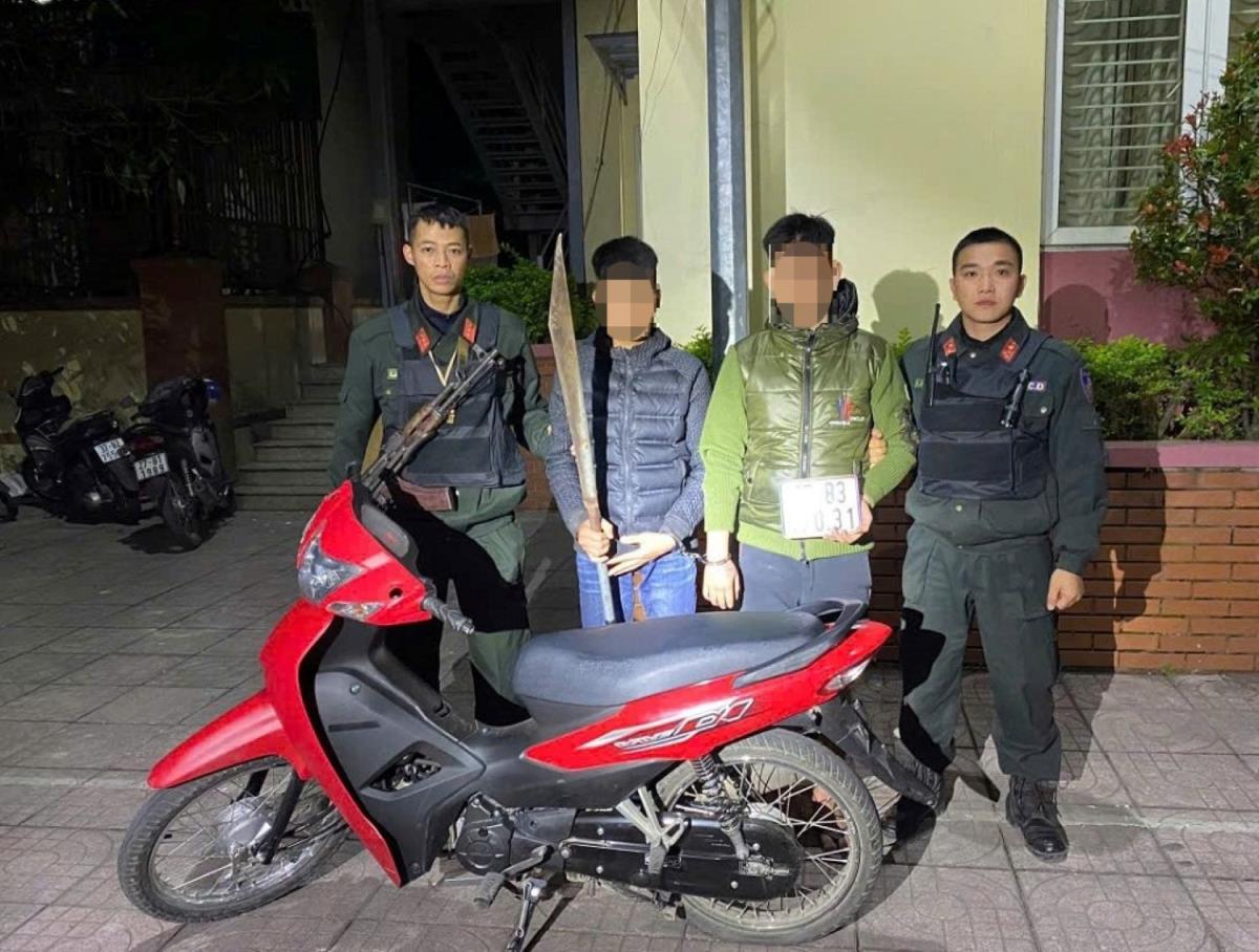Tiếp đó, khoảng 1 giờ 10 ngày 11-1, Tổ công tác thuộc Đội Cảnh sát cơ động đang làm nhiệm vụ tại khu vực đường Lê Duẩn, phường Trường Vinh thì phát hiện 2 nam thanh niên đang điều khiển xe mô-tô với tốc độ cao, không gắn biển số, cầm trên tay 1 thanh kiếm tự chế nên áp sát và dừng xe kiểm tra. Qua kiểm tra, 2 nam thanh niên tên là P.C.G. (2010, trú tại xã Vạn An) và N.H.D. (2009, trú tại xã Nam Đàn) tỉnh Nghệ An. Bước đầu, 2 thanh niên khai nhận, thanh kiếm trên nhặt được tại khu vực đường Hồ Tùng Mậu.