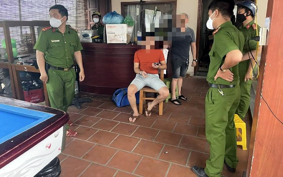 CAP Hòa Minh kiểm tra quán cho người dân đánh bi-a ăn tiền giữa thời điểm dịch bệnh bùng phát. |