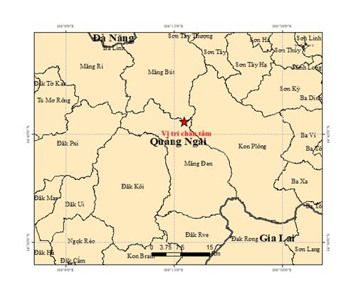 Cụ thể, vào lúc 18 giờ 21 phút 36 giây, một trận động đất có độ lớn 3,6 xảy ra tại vị trí 14,779 độ vĩ Bắc – 108,274 độ kinh Đông, độ sâu chấn tiêu khoảng 8 km.
