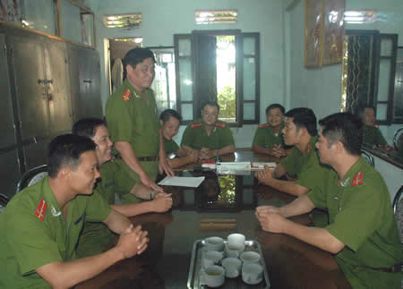 Tập thể CBCS Đội truy nã PC14 CA Nghệ An họp bàn phương án truy bắt đối tượng. |