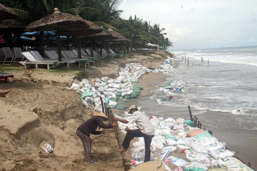 Những năm qua tình trạng biển xâm lấn đất liền hay rừng phòng hộ nhường chỗ cho các dự án về kinh tế - xã hội luôn là vấn đề nhức nhối đã được phản ánh nhiều lần. Sau bão, bờ biển Cửa Đại vốn đã tan hoang từ mùa bão năm trước nay lại càng trở nên thê thảm hơn. Mặc dù đã ra sức chuẩn bị, đắp kè và tổ chức những buổi hội thảo có chuyên gia nước ngoài tham dự để ngăn chặn tình trạng trên nhưng rõ ràng chỉ một cơn bão nhỏ đi qua bờ biển Cửa Đại đã "chịu thua" trước những cơn sóng lớn. Có nhiều nguyên nhân được kết luận là "thủ phạm" gây nên sạt lở biển Cửa Đại nhưng ít ai chú ý rằng ngoài những tác nhân bên ngoài như thủy điện, biến đổi khí hậu thì bản thân bờ biển này cũng đã bị khai thác quá mức không còn đủ cứng cáp để chịu được sóng lớn. Những gốc dừa trước kia là điểm nhấn của bãi biển nay bật gốc nằm trơ trọi. Biển tiếp tục ăn sâu vào đất liền trước sự bất lực của con người. Dọc bờ biển Cửa Đại về hướng Cù Lao Chàm, những khu resort đang nỗ lực khôi phục cảnh quan. Tại khu resort Fusion tuyến bờ kè cao 5 m nhưng vẫn bị sóng biển khoét sâu. Ông Nguyễn Sinh, Chủ tịch UBND P. Cửa Đại cho biết: "Vấn đề sạt lở đã trở thành nỗi ám ảnh thường xuyên khi phường nằm giáp với biển. Tuy nhiên những năm gần đây tình hình trở nên căng thẳng hơn và mức độ sạt lở cũng tăng lên chóng mặt mà chưa có biện pháp triệt để".