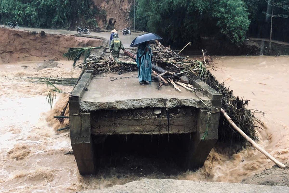 Mưa lớn kéo dài khiến cầu Nước Bao (xã Sơn Hà, tỉnh Quảng Ngãi) bị gãy đôi, cuốn trôi khiến hơn 1.200 người dân bị cô lập; trong khi tại xã Nguyễn Nghiêm, một trận lốc xoáy lúc nửa đêm làm tốc mái nhiều ngôi nhà.