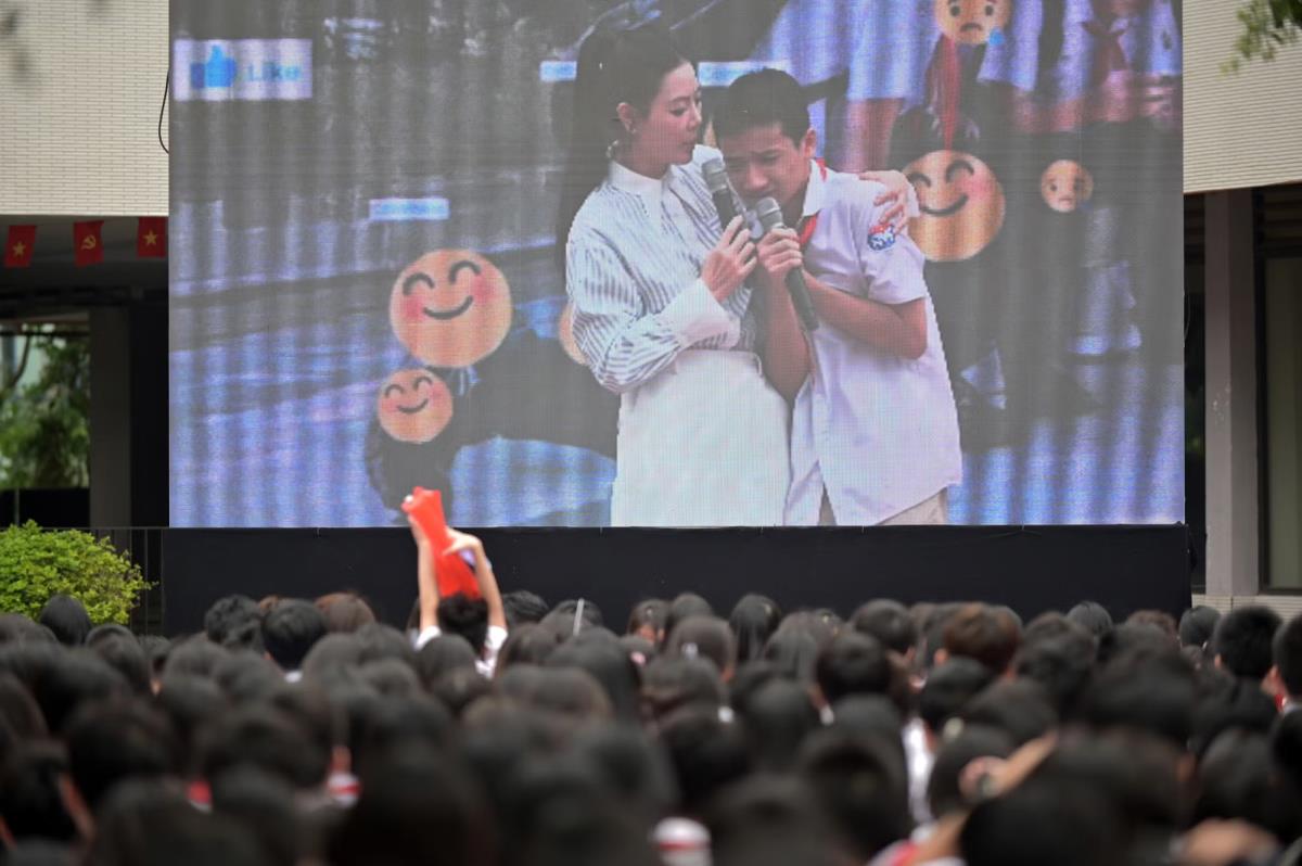 Đặc biệt, sự kiện còn có sự hiện diện trực tiếp của KOL Tuyền Văn Hóa ngay tại sân trường. Đứng giữa vòng vây của các bạn trẻ và nhìn vào con số hiển thị 4 triệu lượt người đang theo dõi trực tiếp tính đến 9h30 sáng, Tuyền Văn Hóa chia sẻ đầy cảm xúc: "Được trực tiếp đứng ở đây mới thấy mô hình này mang lại hiệu quả giáo dục quá tuyệt vời.